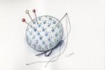 同窓会のあった日は日中イラスト教室でした。今回のテーマは「お裁縫セット」