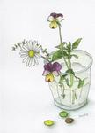 実家でもらってきたビオラ。結婚パーティーの帰りにもらったマーブルチョコ。そしてグラスに初挑戦・・・